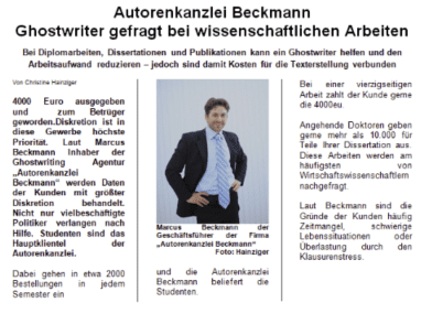 wenn jemand in einer schwierigen Situation ist mit seiner Hausarbeit bis hin zur Dissertation?