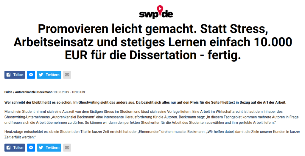 Wer schreibt der bleibt heißt es so schön. Im Ghostwriting sieht das anders aus. Da bezieht sich alles nur auf den Preis für die Seite Fließtext in Bezug auf die Art der Arbeit. Hier der Link zu dem Südwest Presse Beitrag.